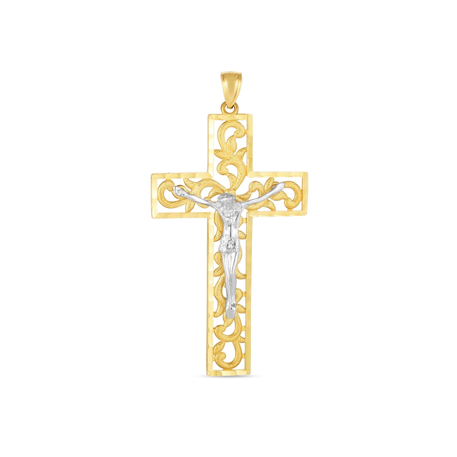 This highly fashionable Two-Tone Diamond Cut Pendant is crafted in 14k yellow & white gold with a high polish finish & hangs from a sleek bail. Perfect for pairing with any basic chain.