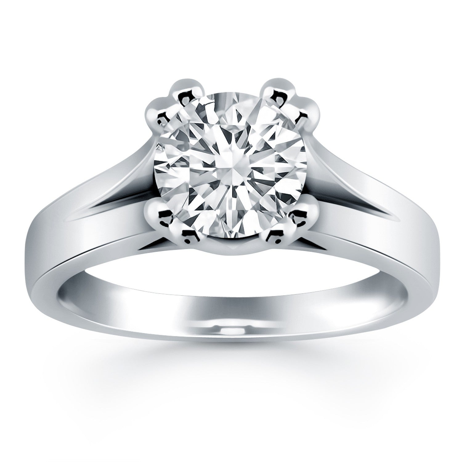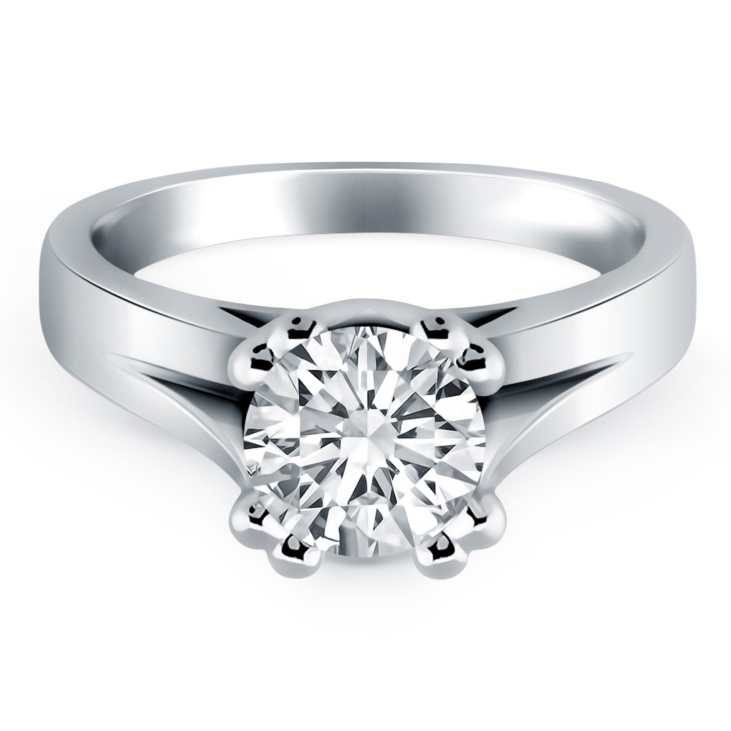The sweeping curves of the substantial set of this bold engagement ring mounting highlight the center stone of your choice. The wide band features the fashionable split shank motif while the bright mirror finish lends an attractive touch. Center stone not included.