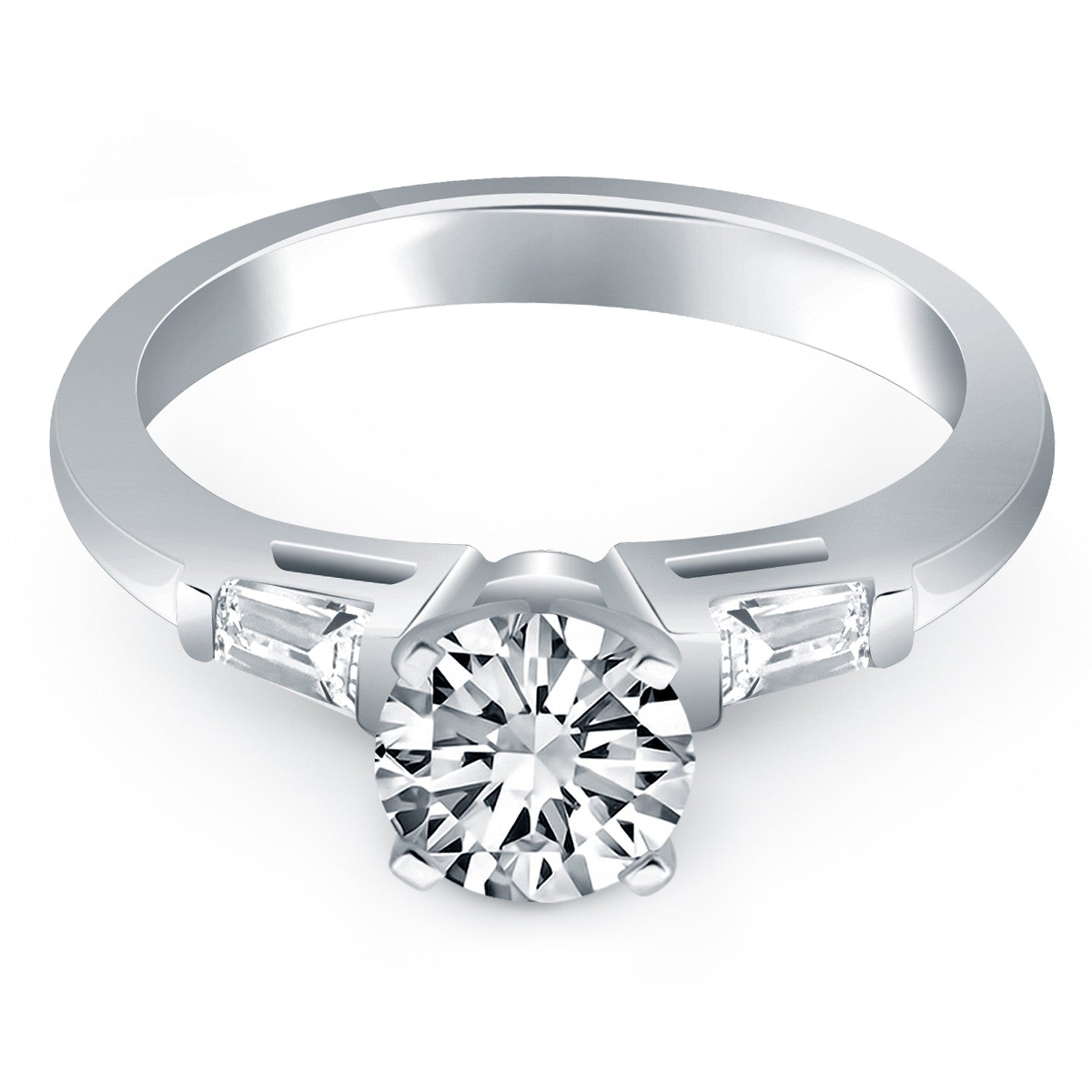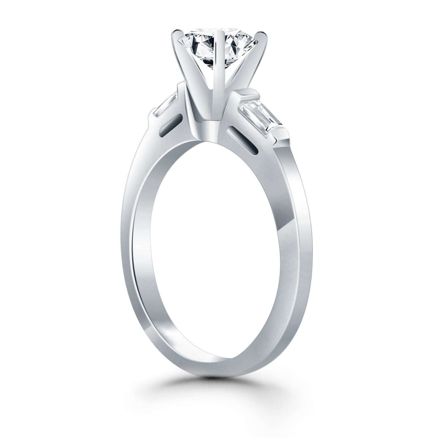 Streamlined and tailored, this classic engagement ring features tapered baguette side diamonds that add an attractive flash and highlight your center stone. Expertly crafted in 14k white gold, the center setting is designed to accept a wide range of center stone sizes and shapes. Center stone and setting not included.