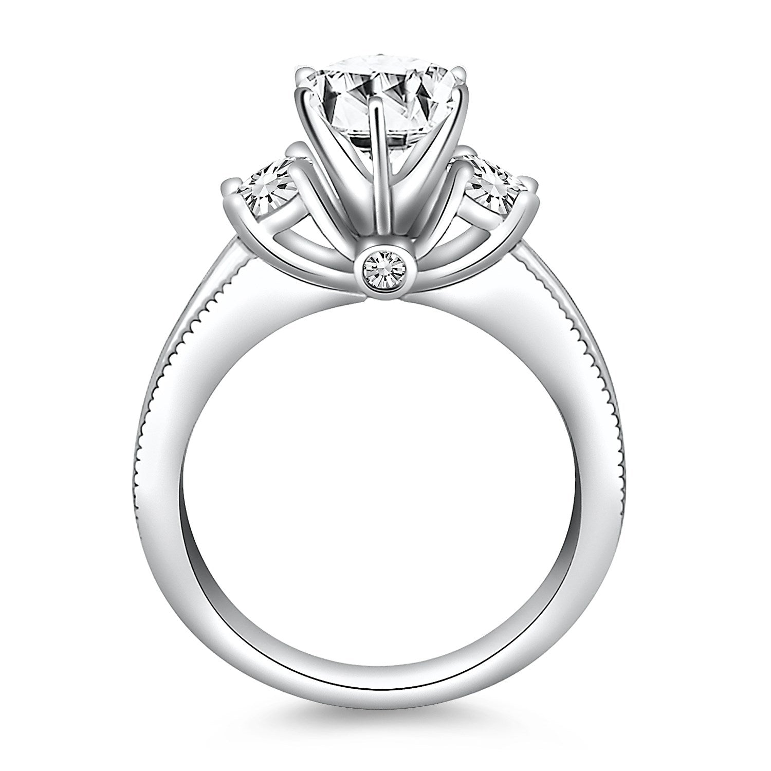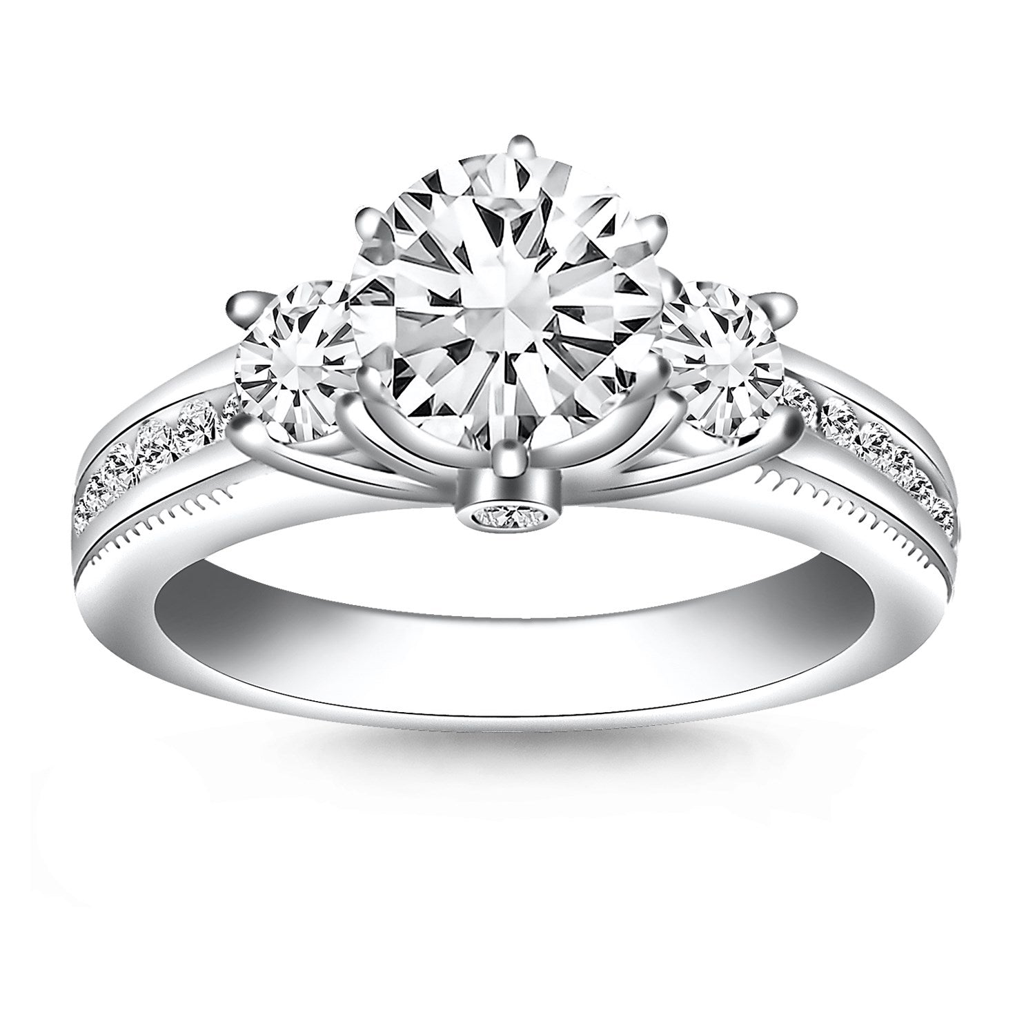 A symphony of elegance, this elaborate engagement ring mounting combines multiple setting styles to a dramatic effect The center setting is highlighted by two prong set side diamonds. A row of channel set diamonds enlivens the band, while two bezel set diamond accents peek out from the sides. Textured and polished, this expertly crafted 14k white gold ring is designed to accept a range of center stone shapes and sizes. Center stone and setting are not included.