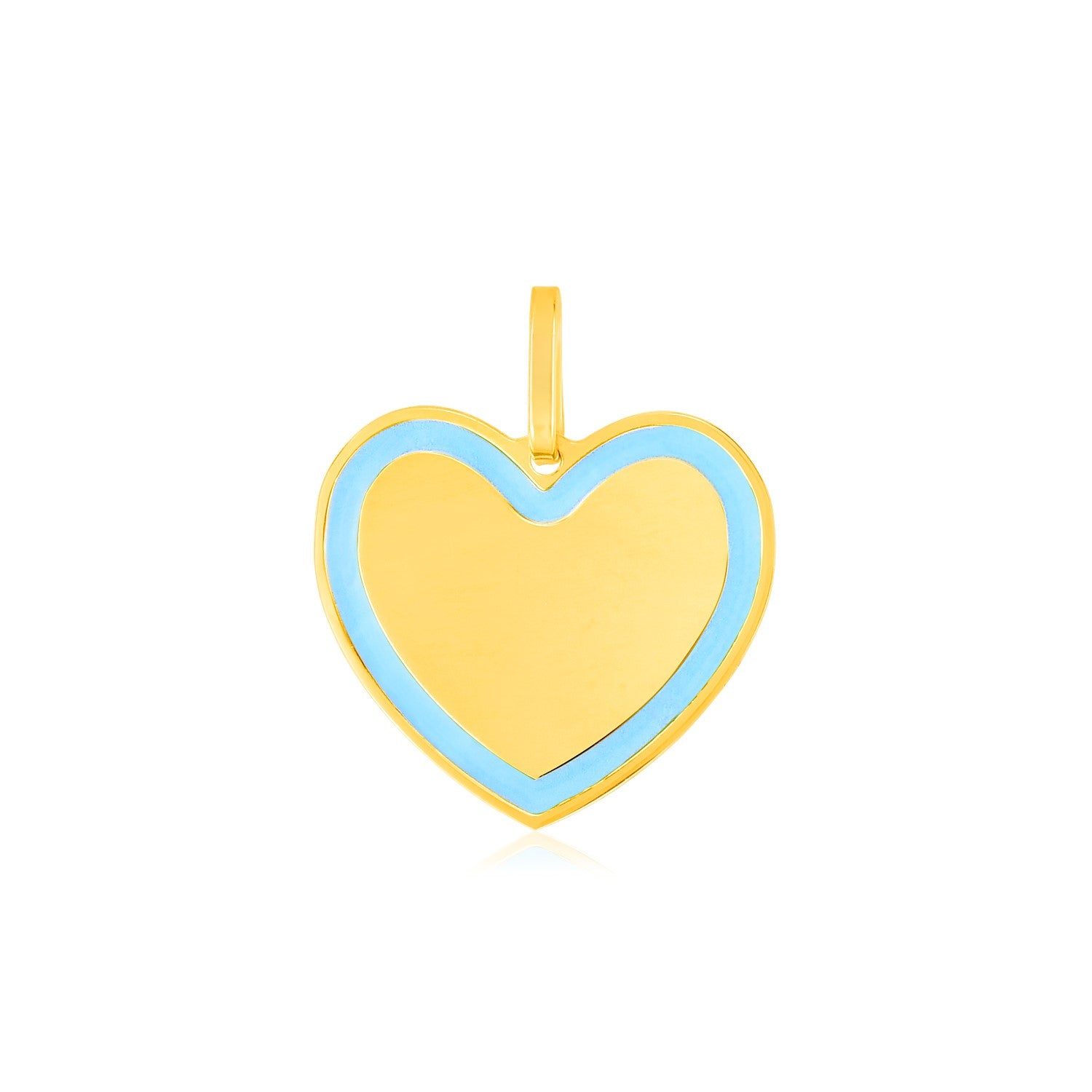 A bold border of blue enamel surrounds beautifully polished 14k yellow gold on this lovely heart charm.
