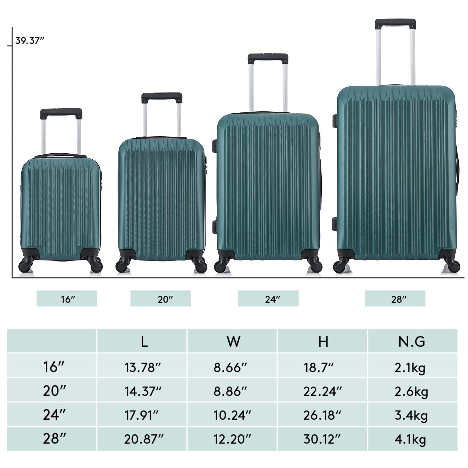 4 Piece Set Luggage Sets Suitcase ABS Hardshell Lightweight Spinner Wheels Army Green