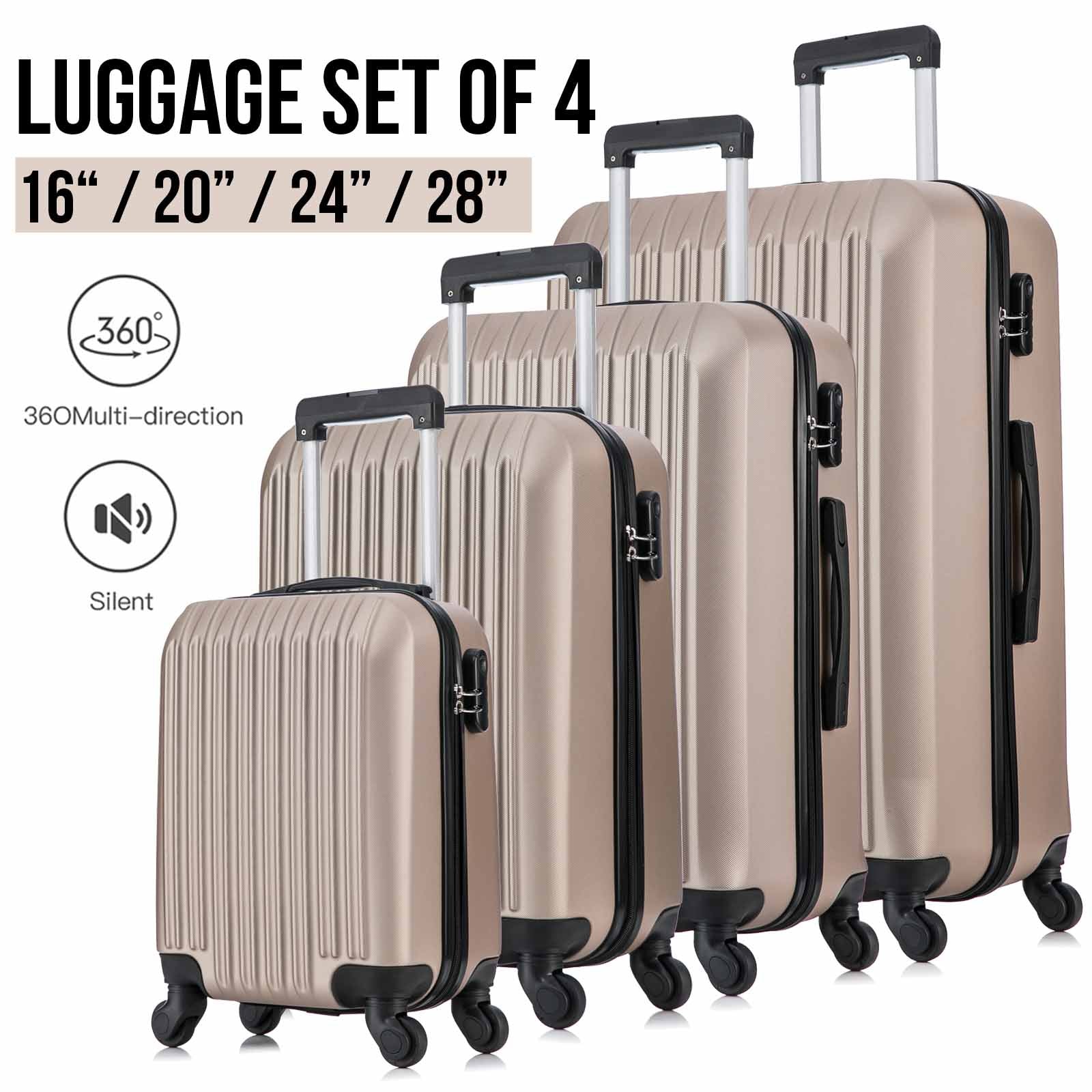 4 Piece Set Luggage Sets Suitcase ABS Hardshell Lightweight Spinner Wheels Champagne Gold