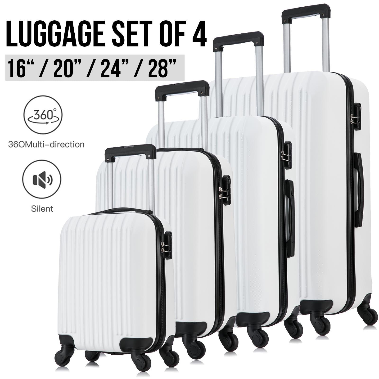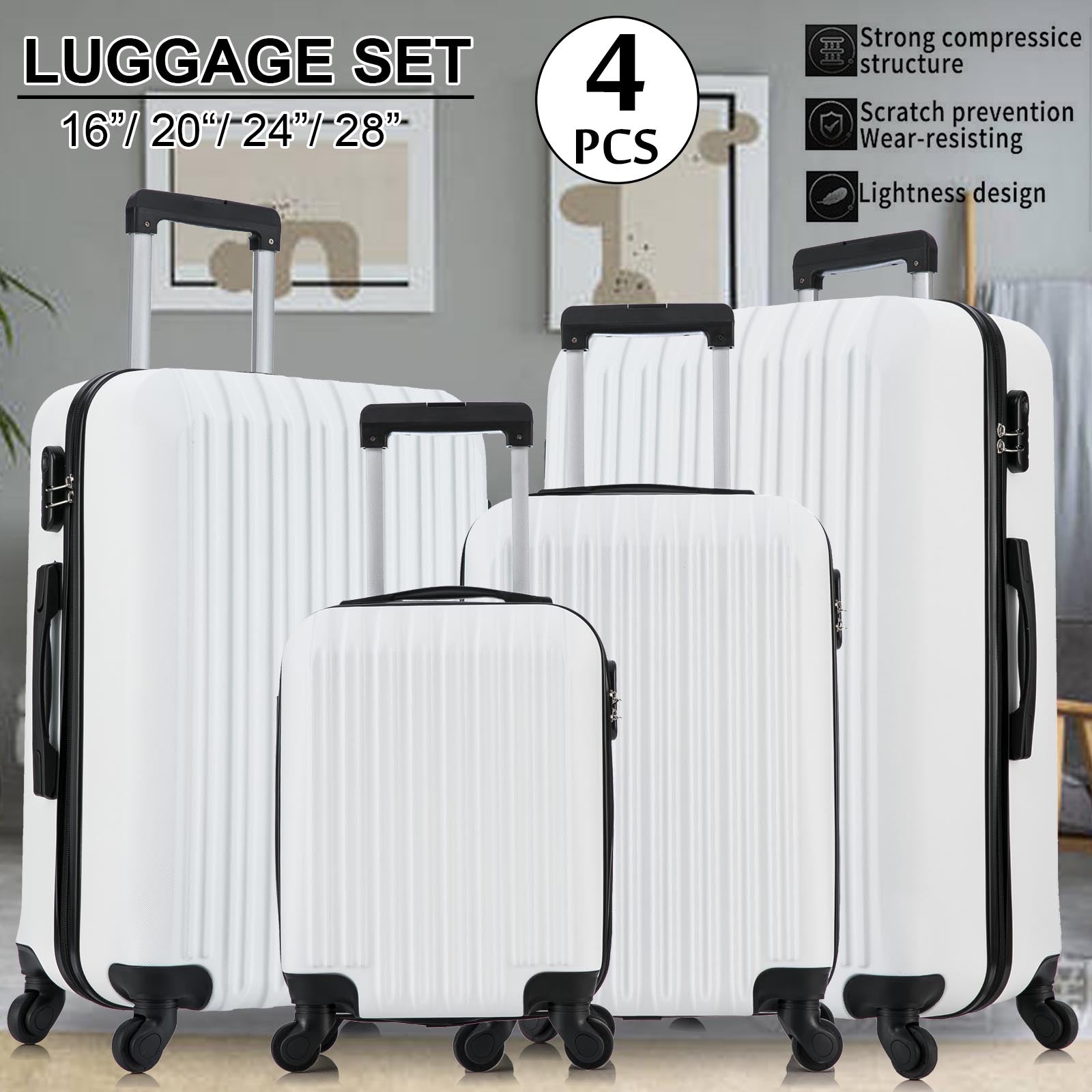 4 Piece Set Luggage Sets Suitcase ABS Hardshell Lightweight Spinner Wheels  Milk White
