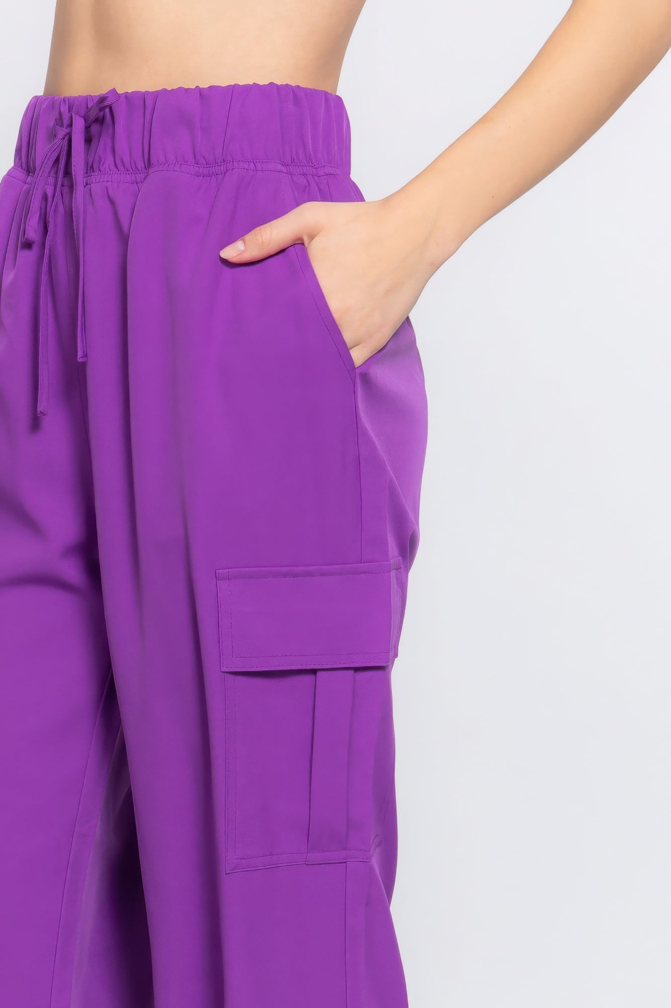 Enhance your casual wardrobe with our Lightweight Stretch Woven Cargo Jogger Pants in Purple, where comfort meets style seamlessly!