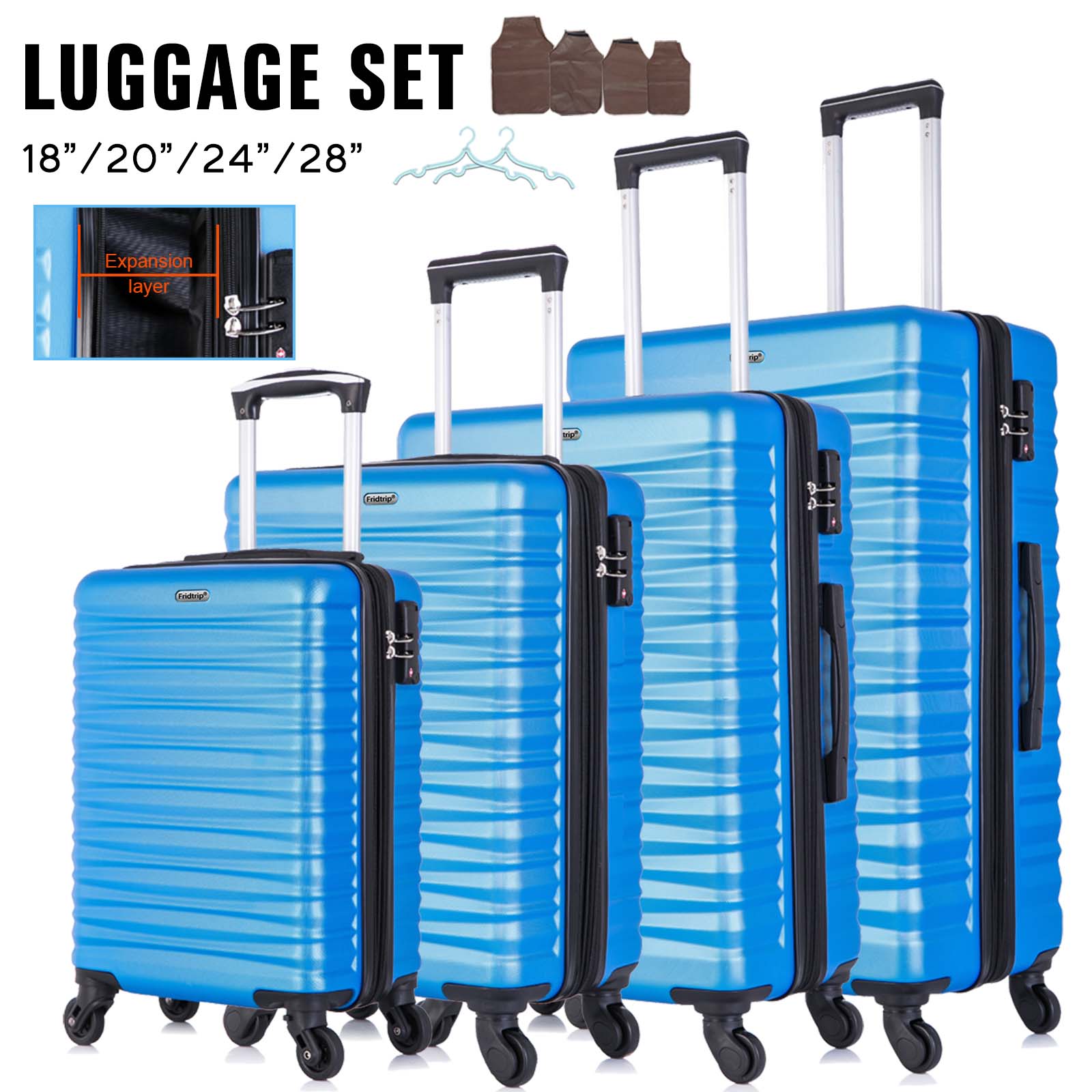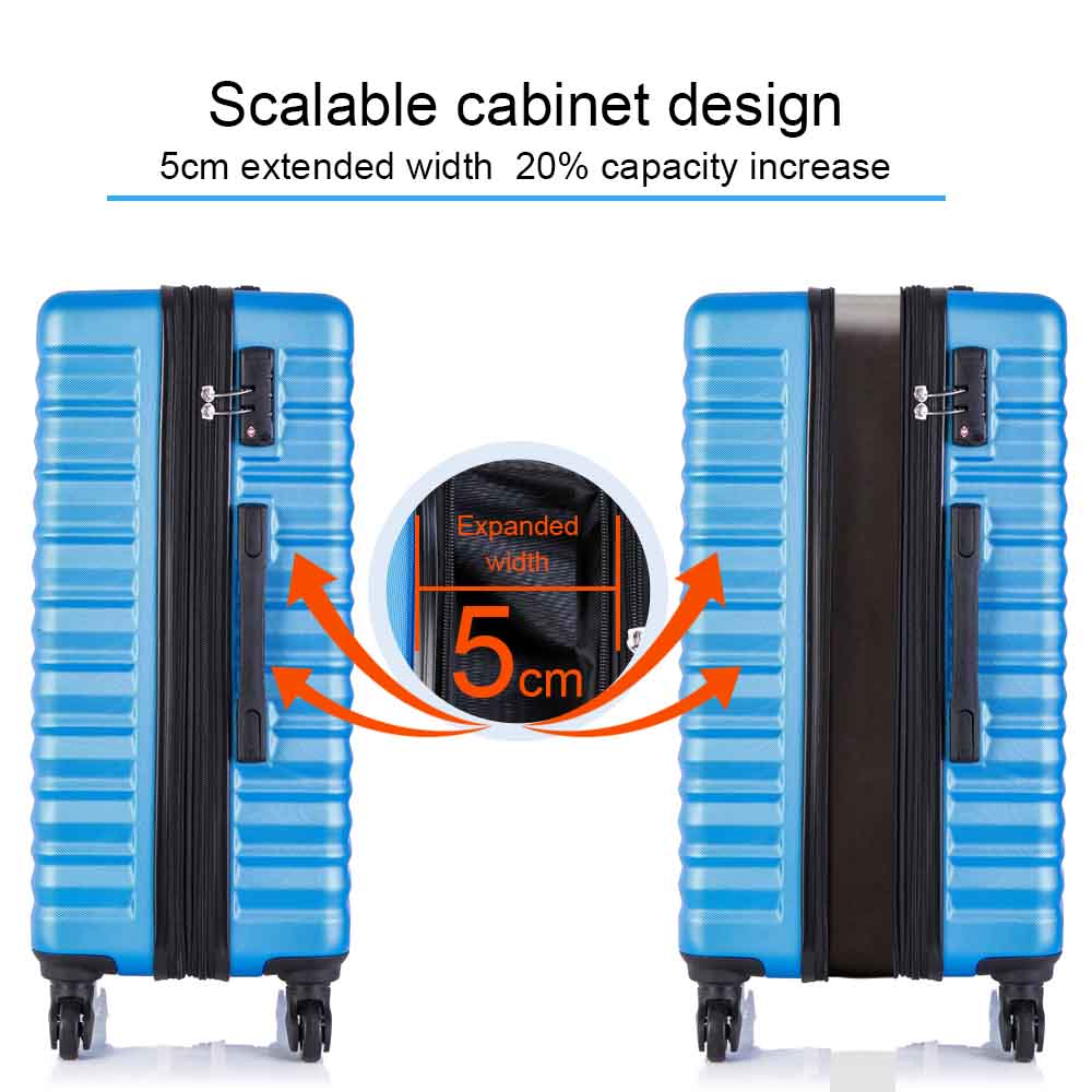 Expandable Hardshell Luggage Sets Suitcase ABS Lightweight with Spinner Wheels TSA Lock Blue